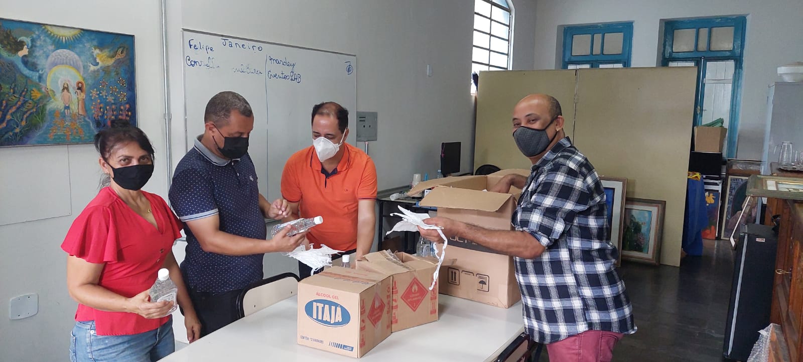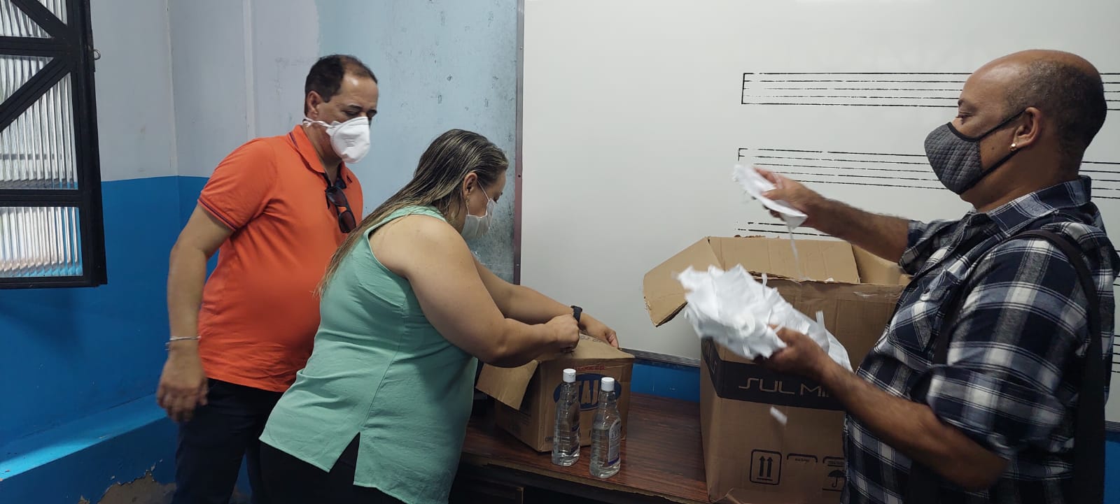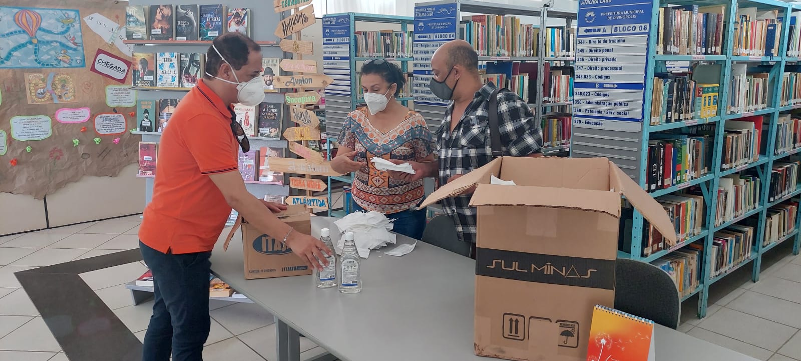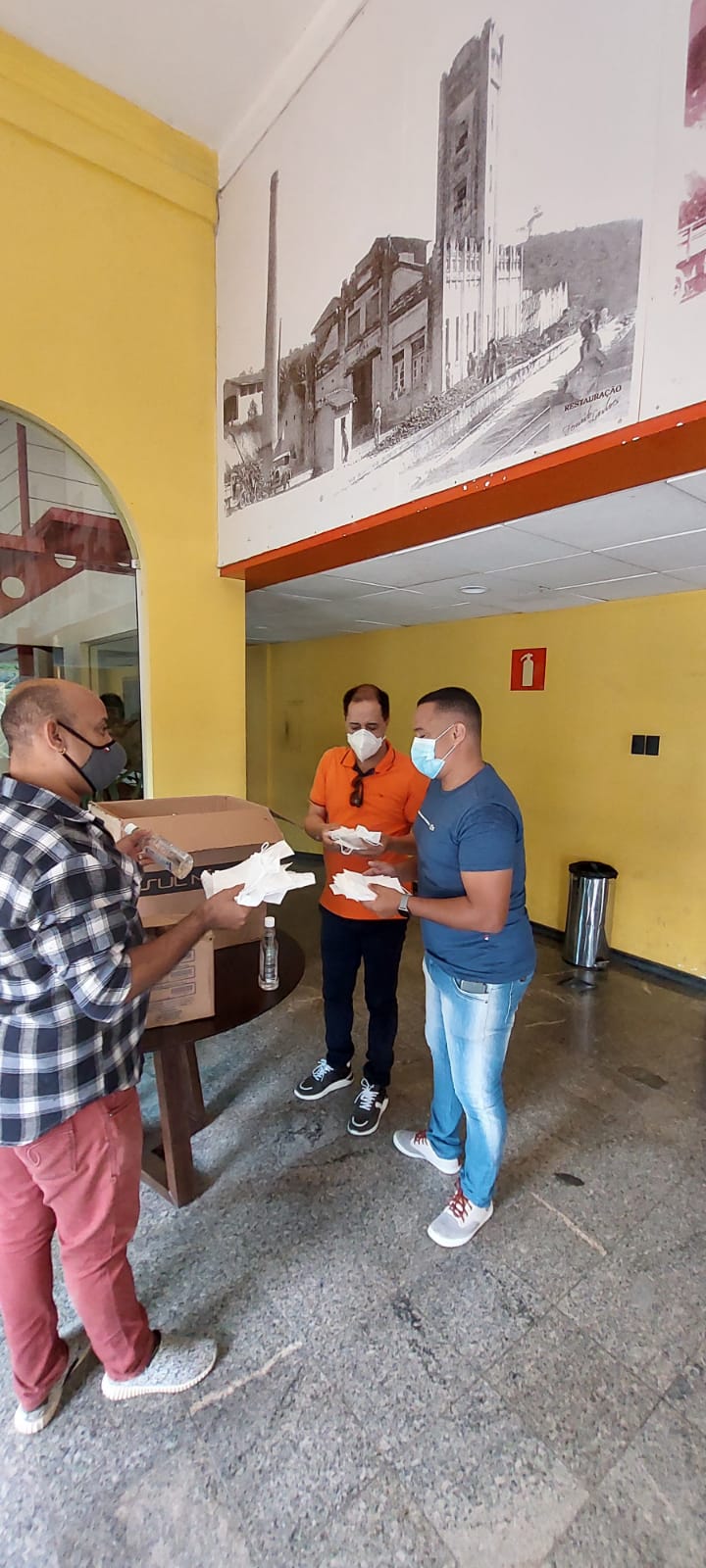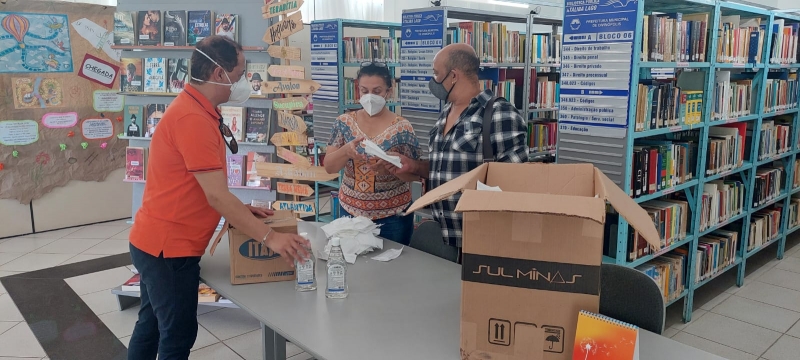 A Secretaria de Cultura distribui álcool em gel e máscaras descartáveis para os servidores.