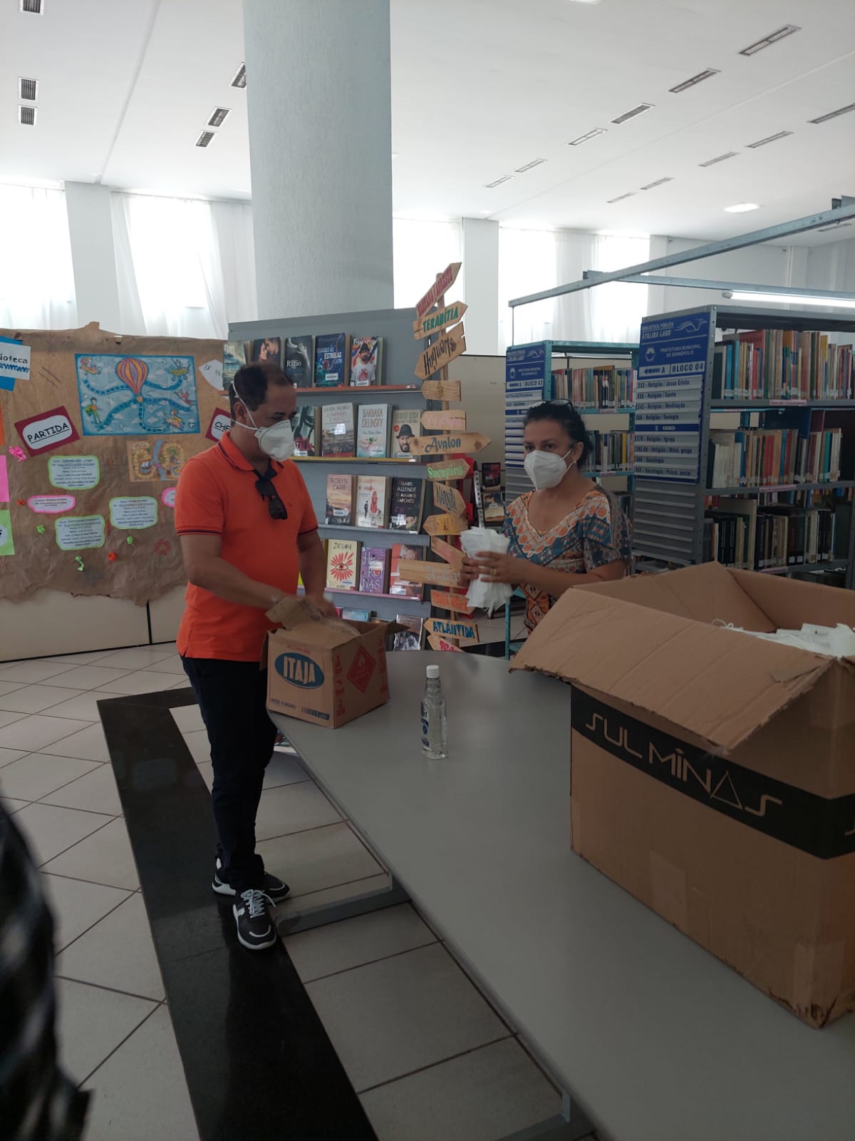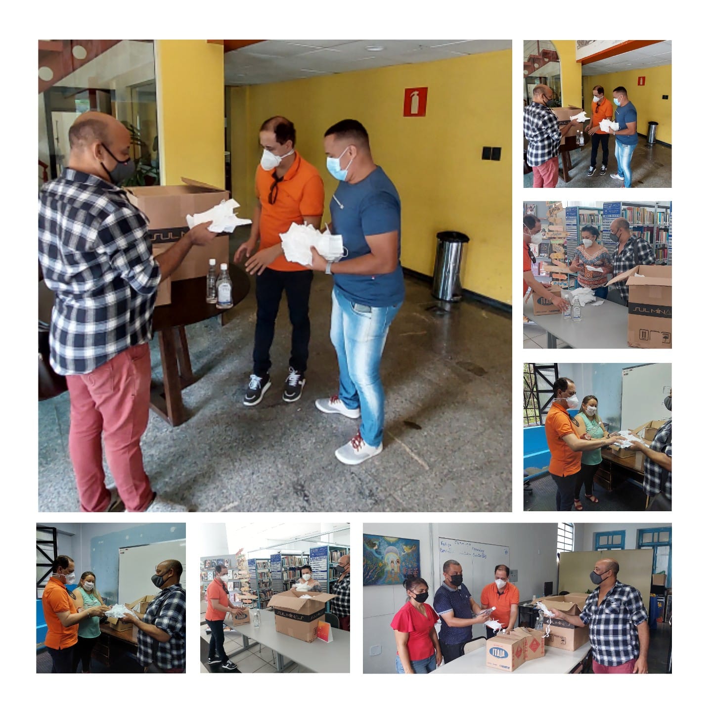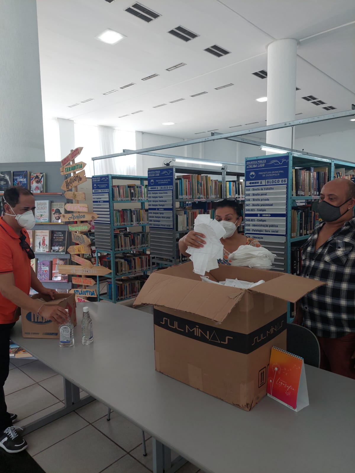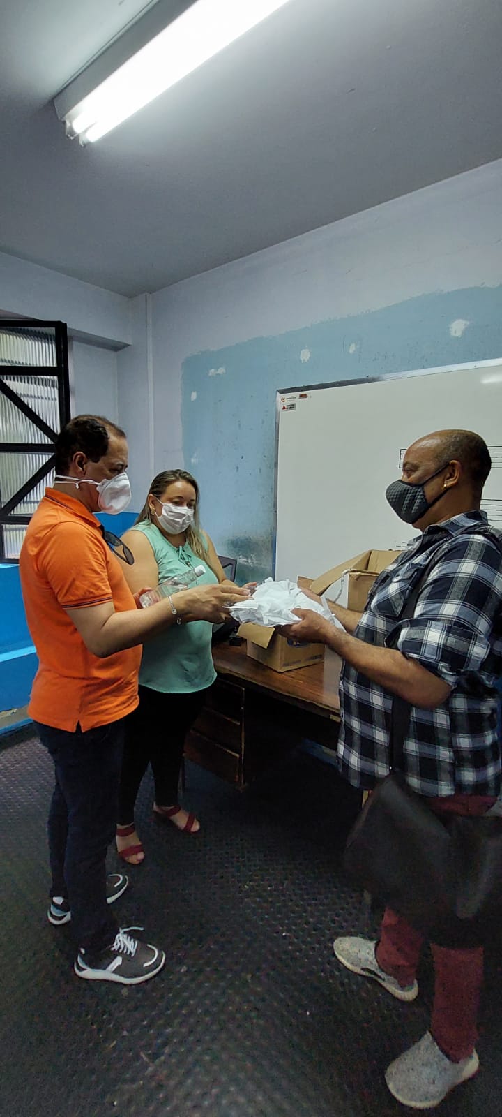 A Secretaria de Cultura distribui álcool em gel e máscaras descartáveis para os servidores.