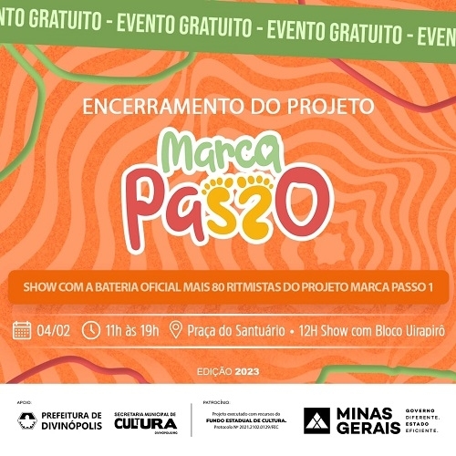 A Prefeitura de Divinópolis, por parte das Secretaria Municipal de Cultura (Semc), divulga hoje (1/2) que, em apoio ao Marca Passo, realizará neste sábado (4/2), uma apresentação com os alunos do projeto.