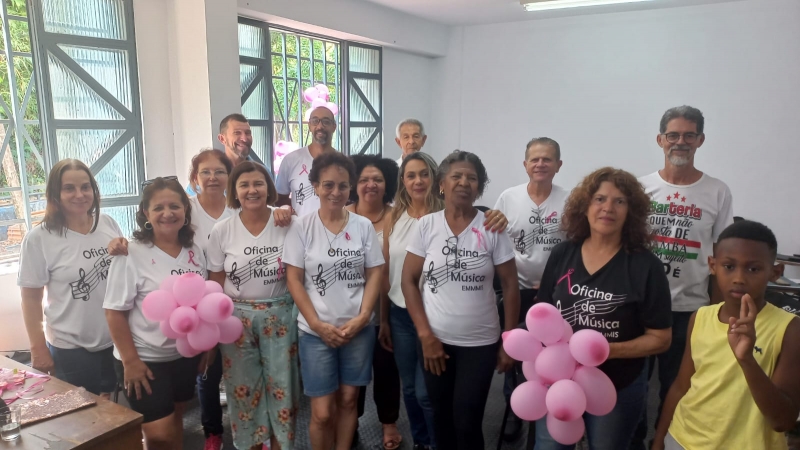 A Prefeitura de Divinópolis, por meio da Secretaria Municipal de Cultura (Semc), informa que foi realizada hoje (26/10) uma aula com os alunos do curso Oficina de Música da Escola Municipal de Música Maestro Ivan Silva. Essa atividade compõe as ações de conscientização do Outubro Rosa.