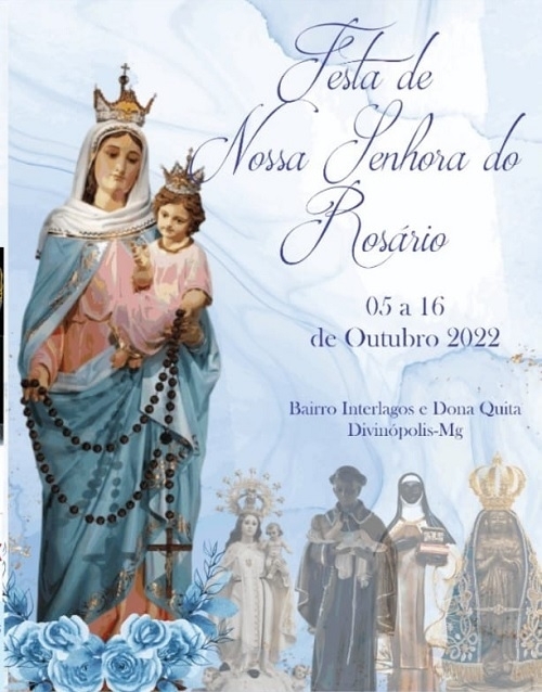 A Prefeitura de Divinópolis, por meio da Secretaria Municipal de Cultura (Semc), junto à Congregação das Irmandades Congadeiras, de Reinado, Festa de Cruz, Folia de Reis e Correlatas de Divinópolis (Congadiv), apoiam e divulgam a programação da “Festa de Nossa Senhora do Rosário”, que será realizada a partir de hoje, sexta-feira (14/10) até domingo (16/10), nos bairros Dona Quita e Interlagos.