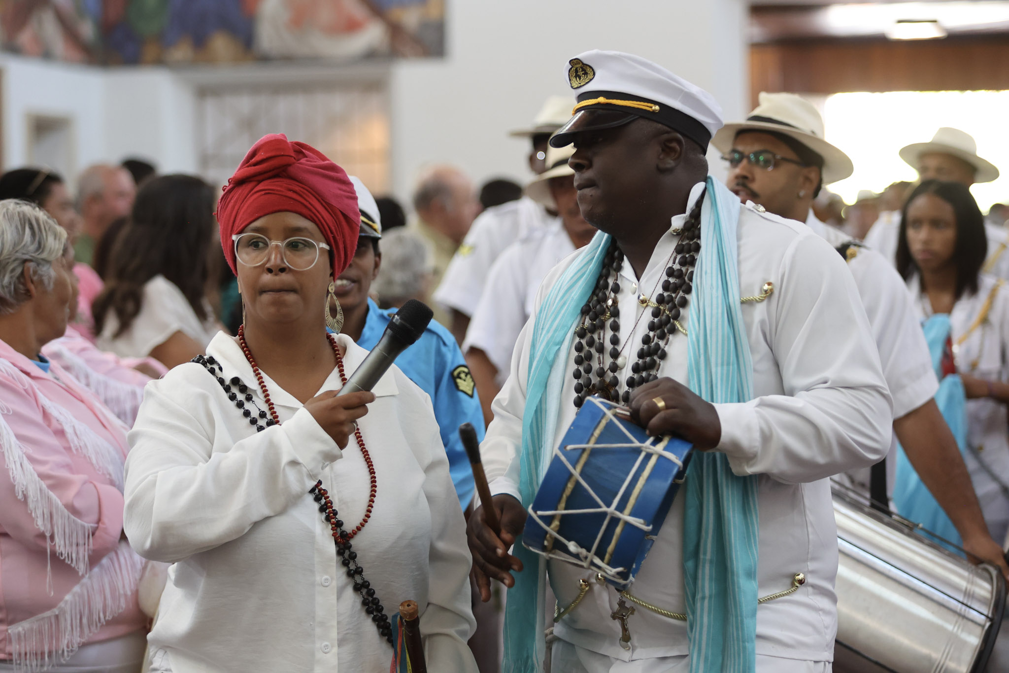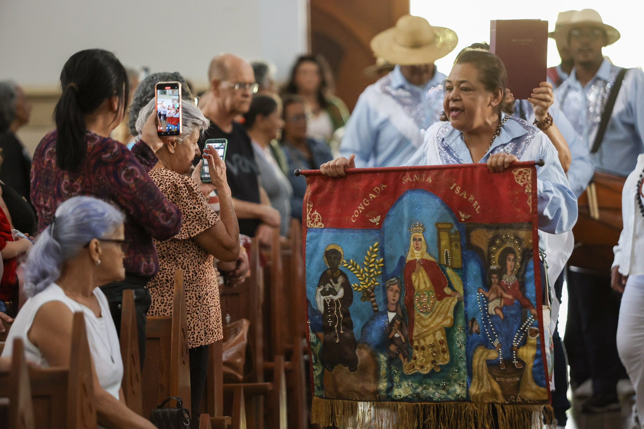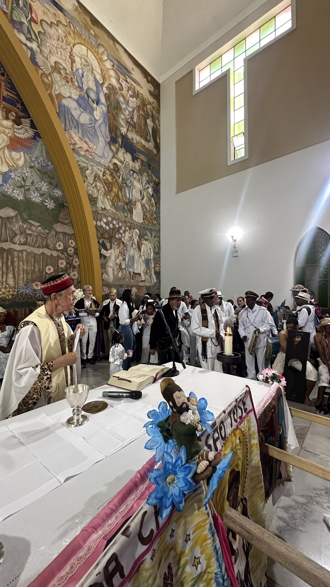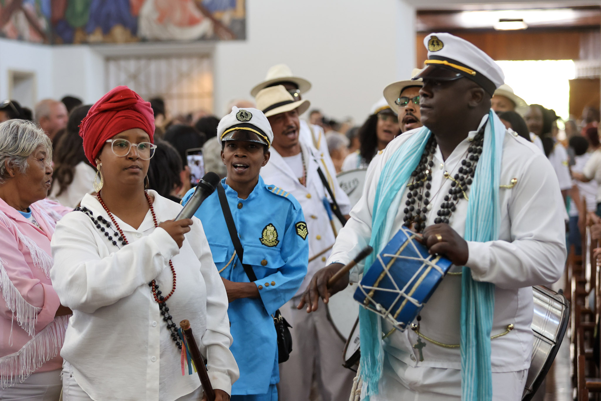 A Prefeitura de Divinópolis, por meio da Secretaria Municipal de Cultura (Semc), em parceria com a Congregação das Irmandades Congadeiras, de Reinado, Festa de Cruz, Folia de Reis e Correlatas de Divinópolis (CongaDiv), promoveu no último domingo (18/5) a 48ª edição da Missa Conga. Ao todo, 15 guardas participaram do evento religioso, celebrado pelo Frei Leonardo no Santuário de Santo Antônio.