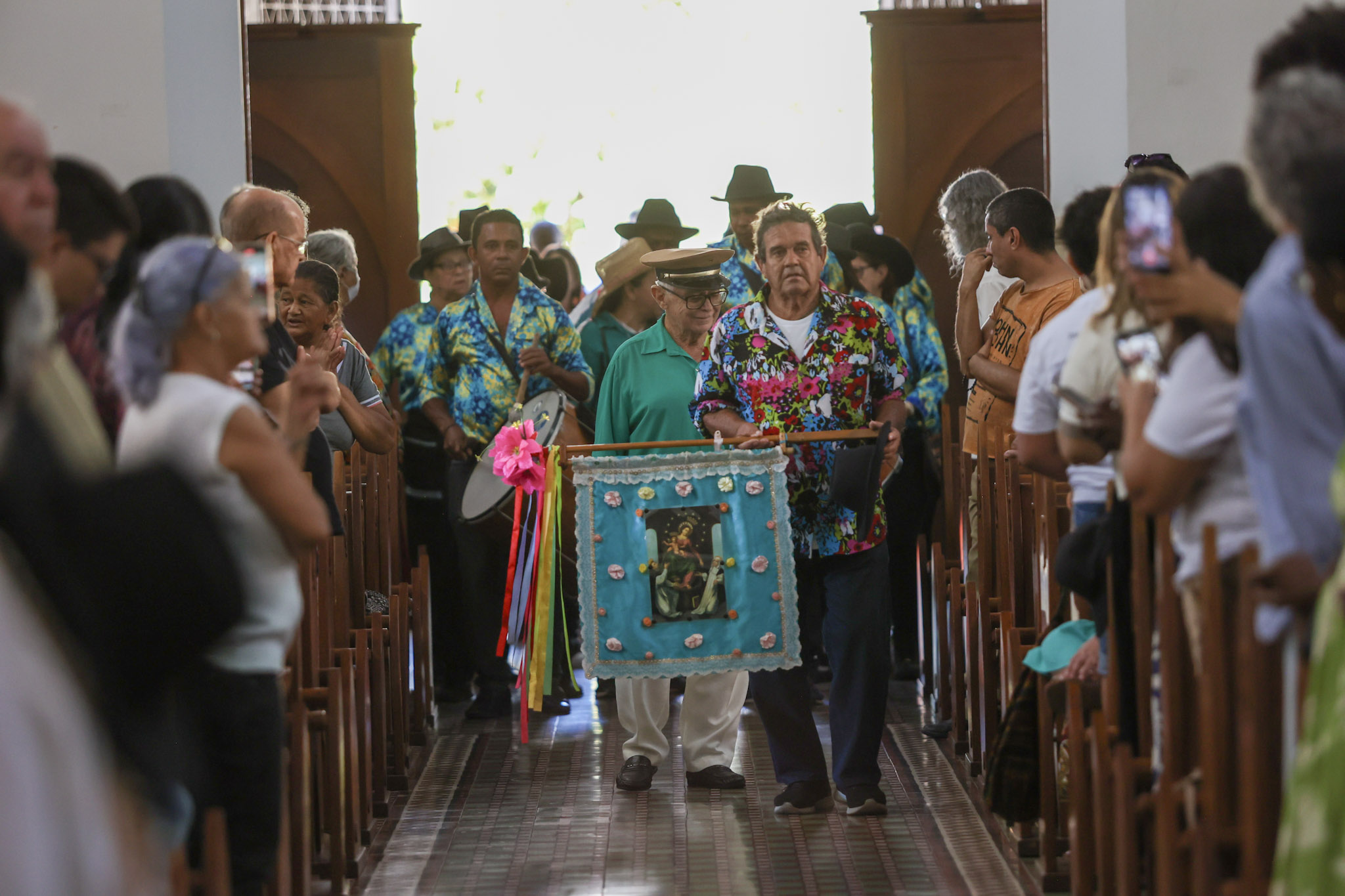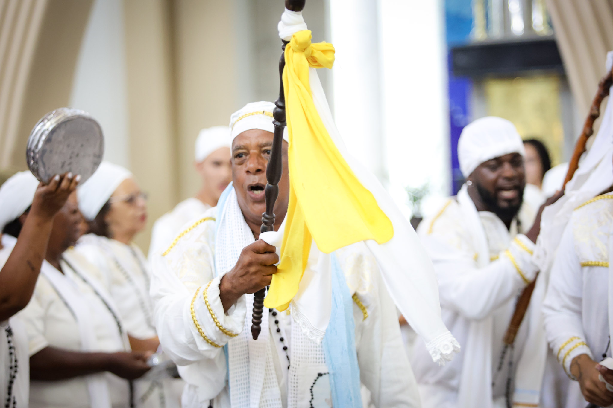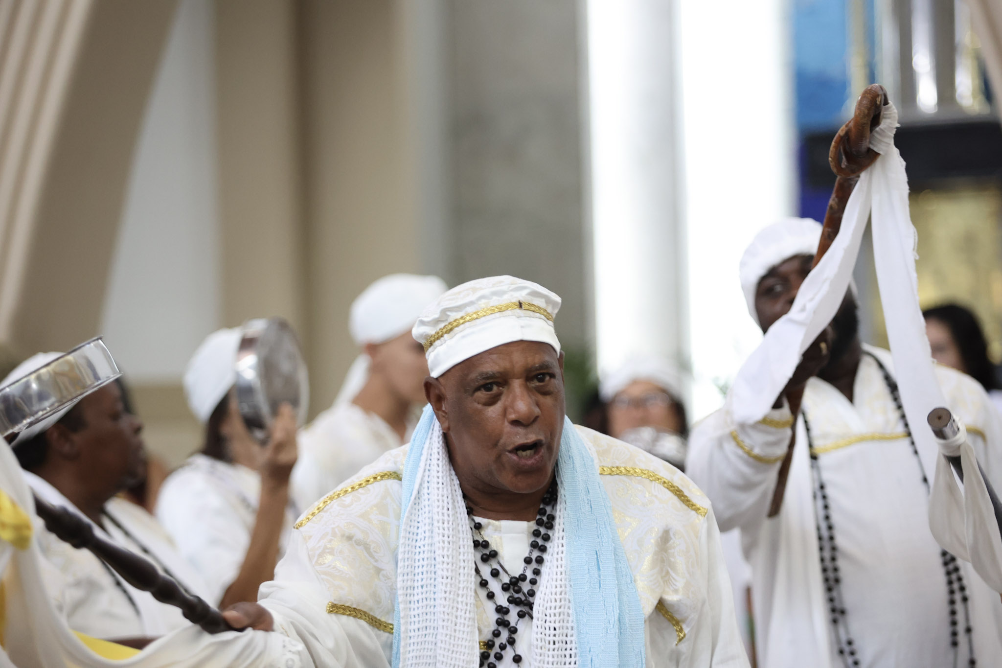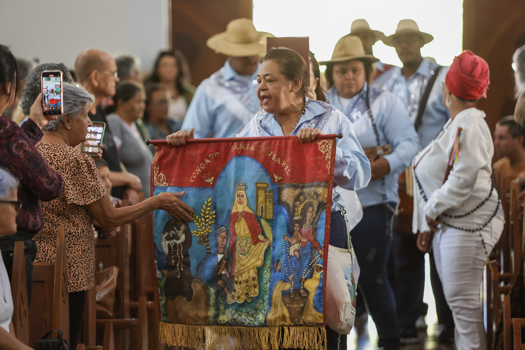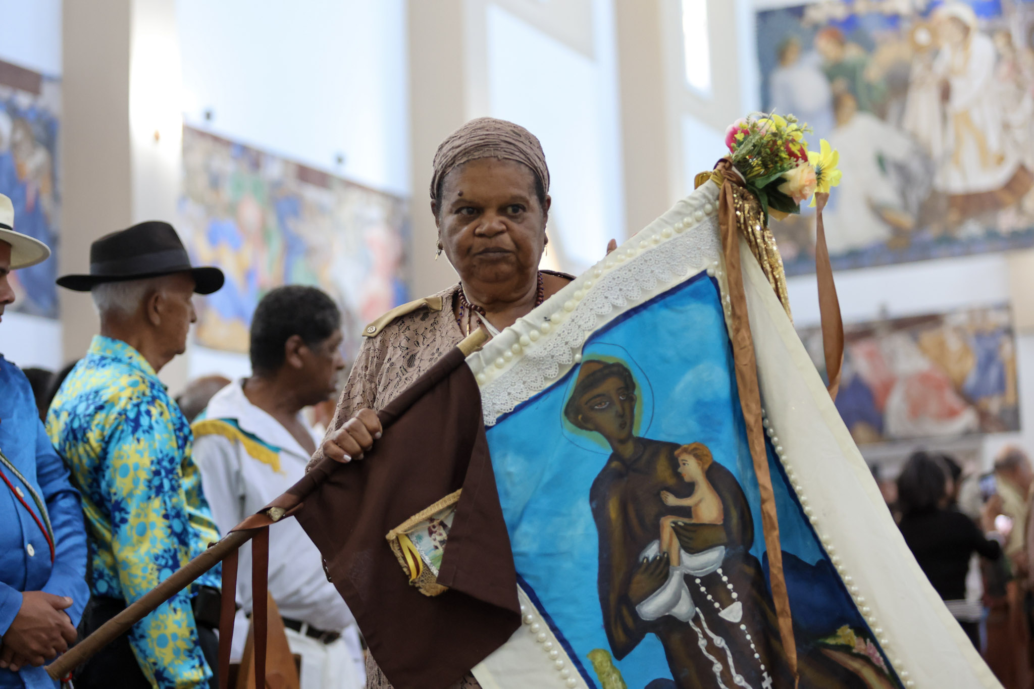 A Prefeitura de Divinópolis, por meio da Secretaria Municipal de Cultura (Semc), em parceria com a Congregação das Irmandades Congadeiras, de Reinado, Festa de Cruz, Folia de Reis e Correlatas de Divinópolis (CongaDiv), promoveu no último domingo (18/5) a 48ª edição da Missa Conga. Ao todo, 15 guardas participaram do evento religioso, celebrado pelo Frei Leonardo no Santuário de Santo Antônio.