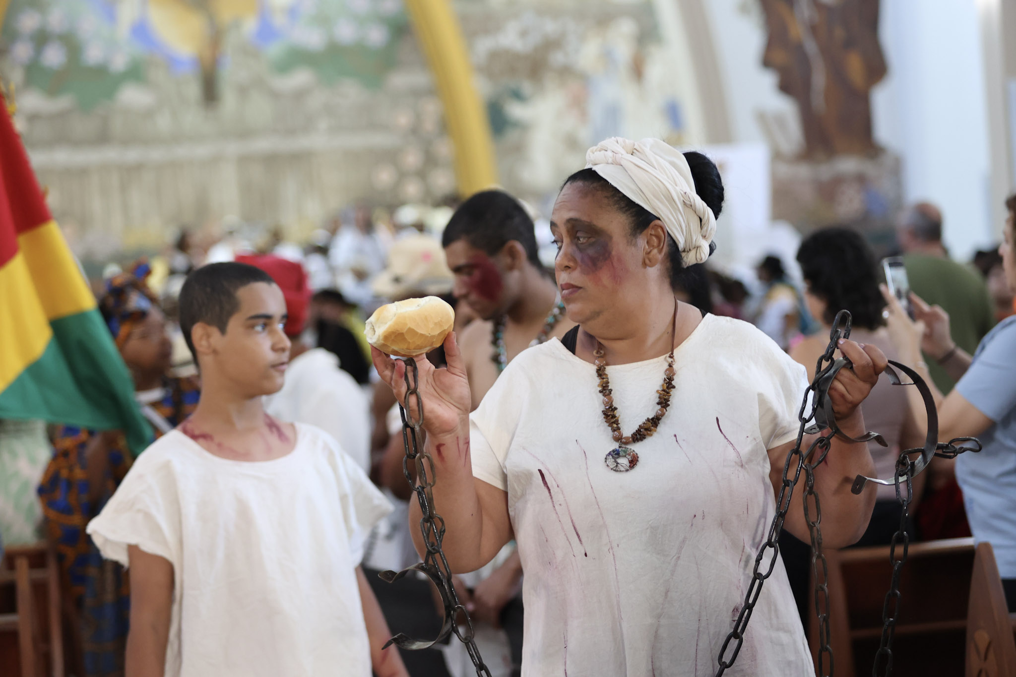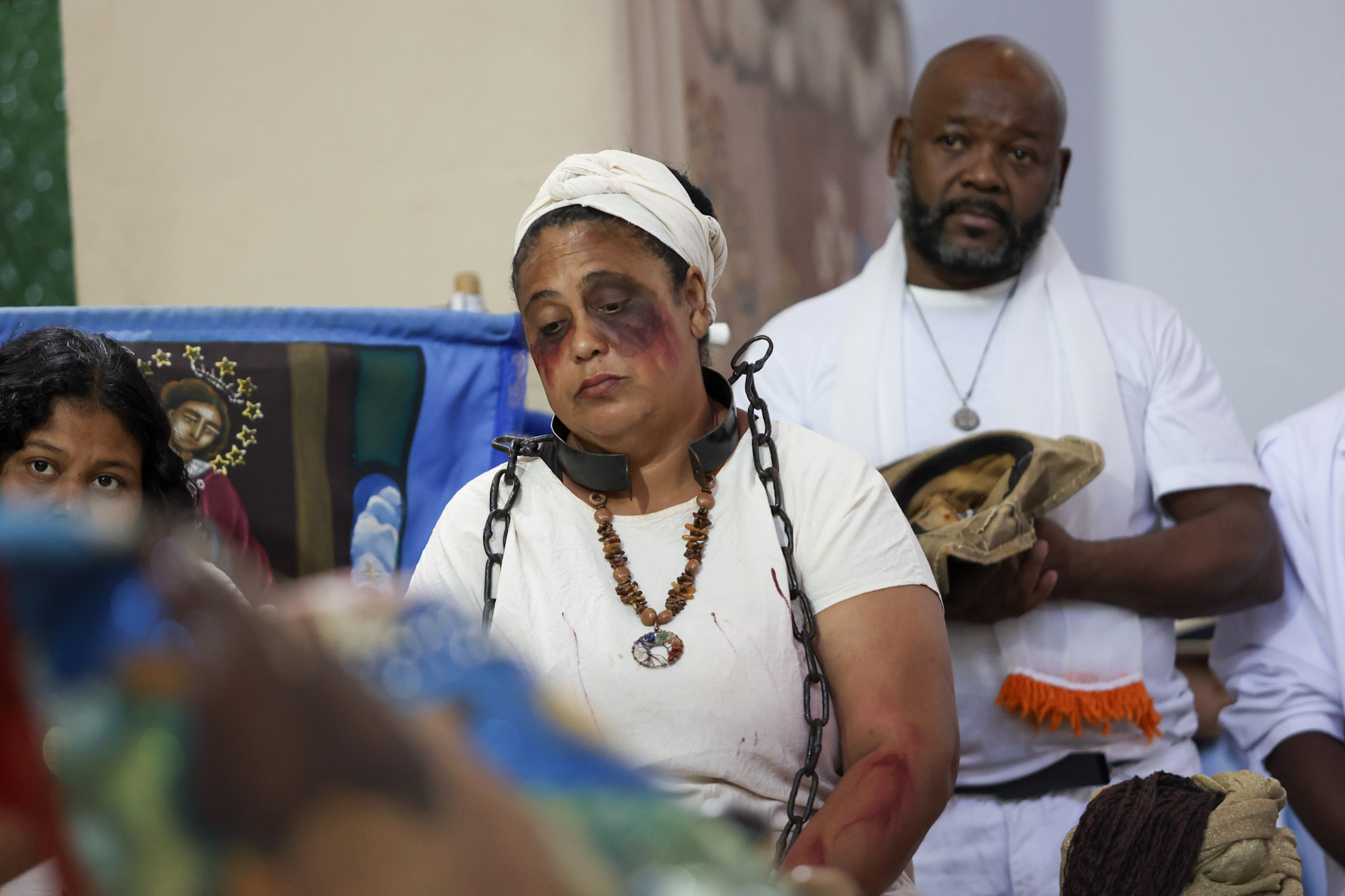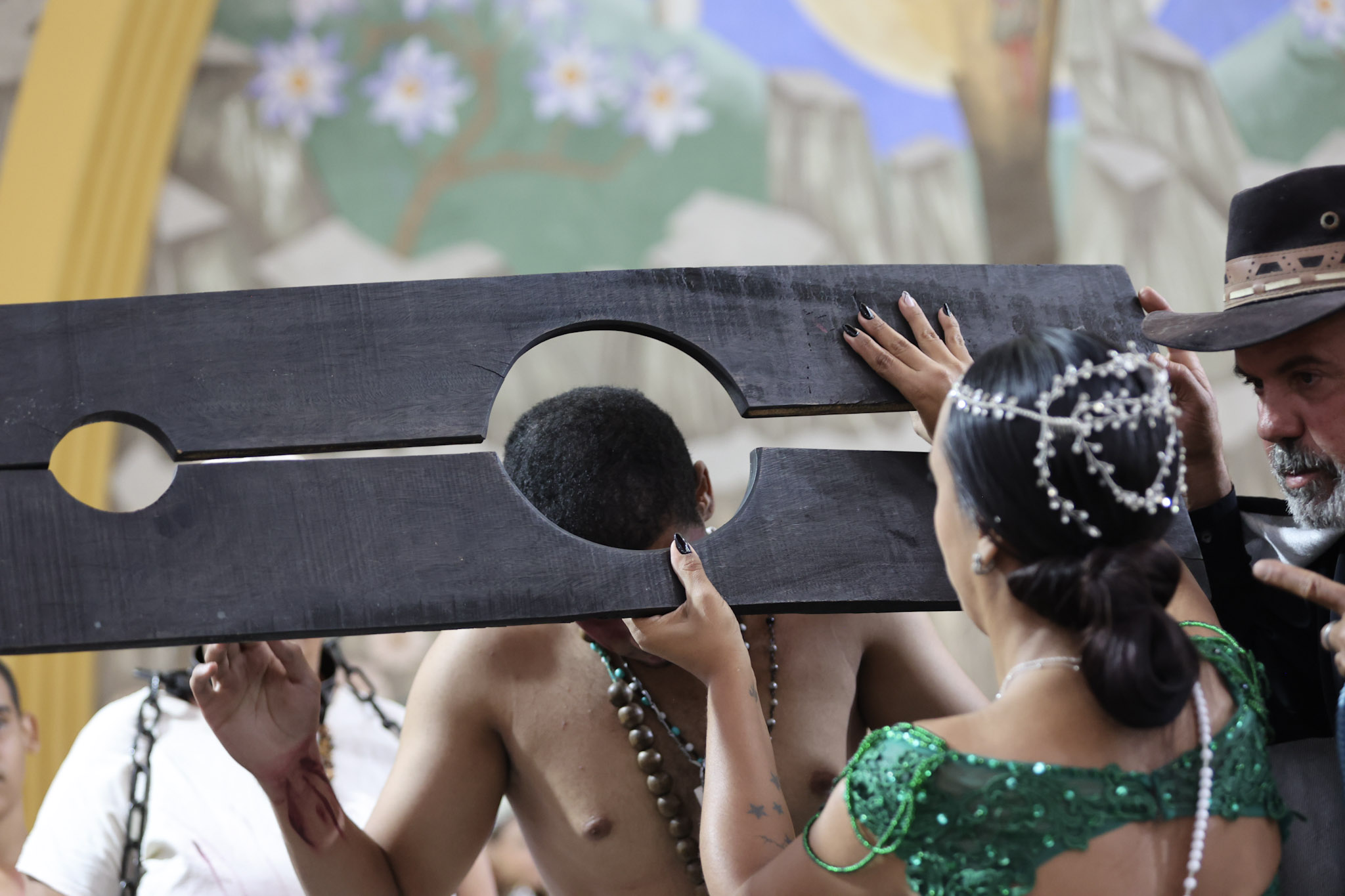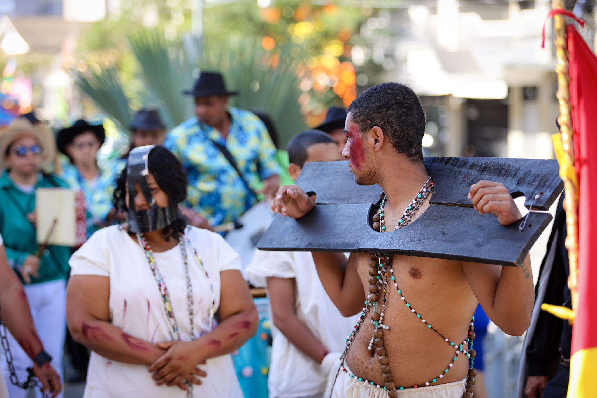 Durante a cerimônia, a leitura da Lei Imperial foi dramatizada com a presença da princesa, das guardas e de escravos acorrentados. Em seguida, as correntes foram retiradas, e o Canto da Libertação foi entoado pelo Terno de Moçambique Nossa Senhora do Rosário, sob a liderança do Capitão Adão.