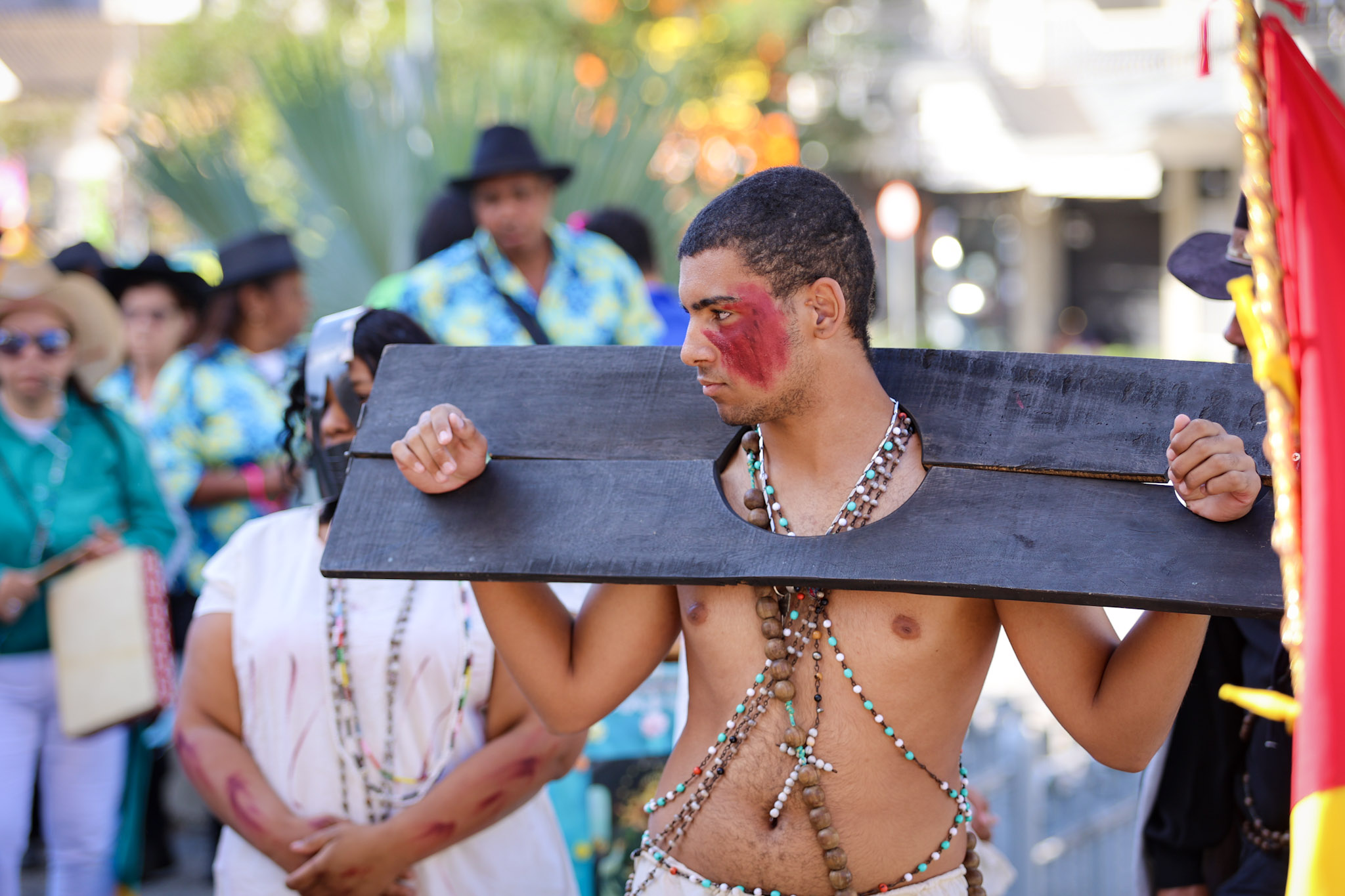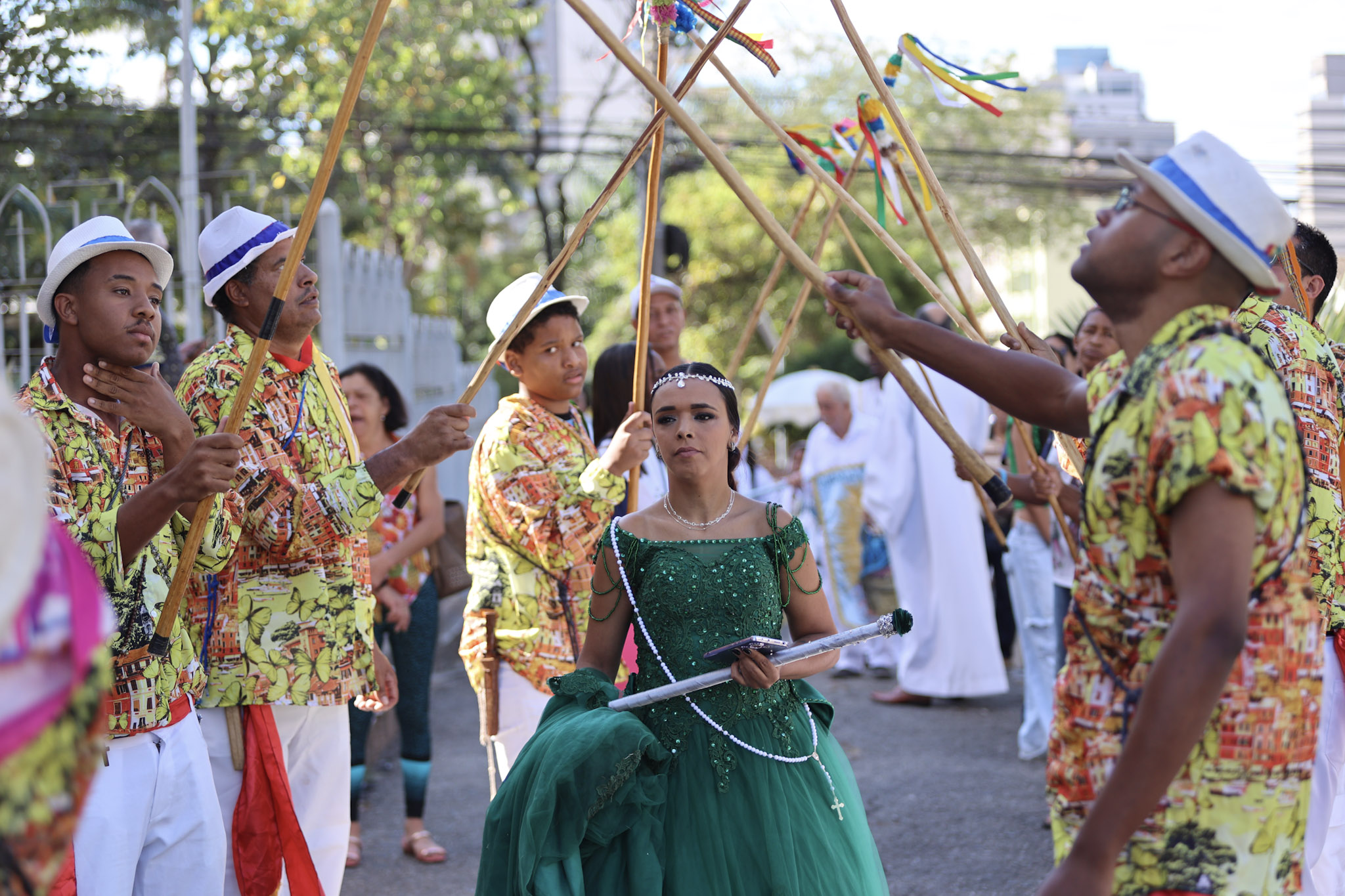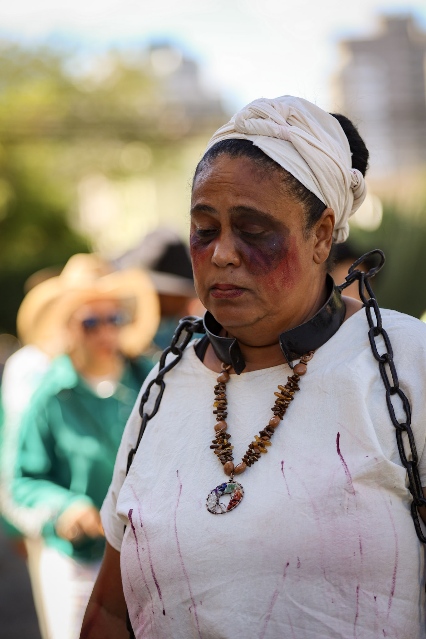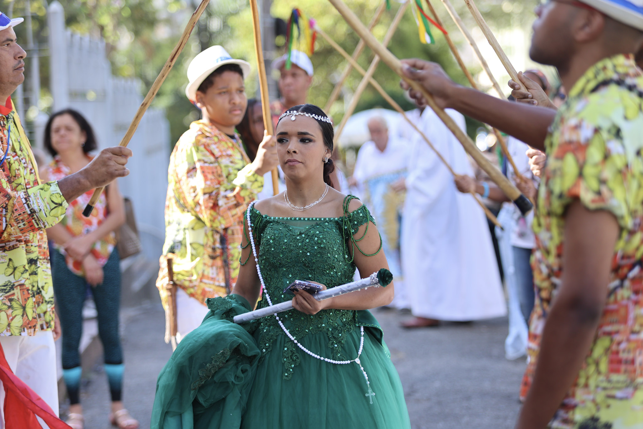 Durante a cerimônia, a leitura da Lei Imperial foi dramatizada com a presença da princesa, das guardas e de escravos acorrentados. Em seguida, as correntes foram retiradas, e o Canto da Libertação foi entoado pelo Terno de Moçambique Nossa Senhora do Rosário, sob a liderança do Capitão Adão.