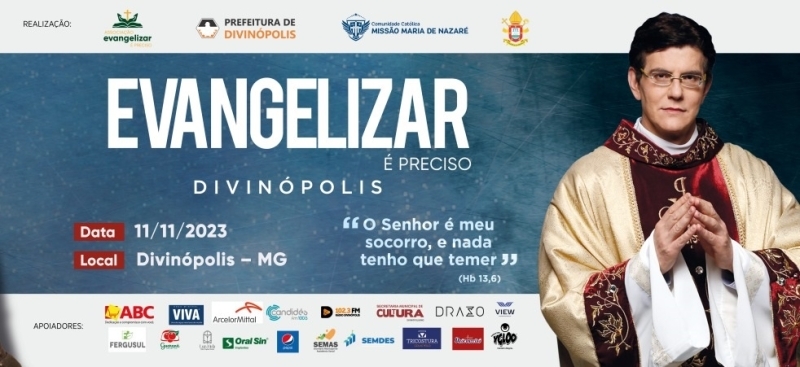 O “Evangelizar é preciso” é o maior evento católico do Brasil e terá uma grande infraestrutura, montada para atender o público vindo de Divinópolis e toda a região. O evento acontecerá no dia 11 de novembro, entre às 12h e 22h. Em breve, a programação completa estará disponível no site da Prefeitura (www.divinopolis.mg.gov.br) e demais meios de comunicação.