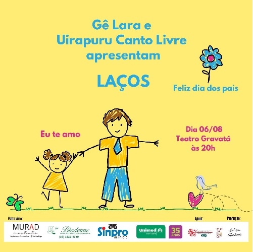 No sábado (6/8), às 20h, o grupo Uirapuru Canto Livre e o músico Gê Lara apresentarão o show musical “Laços – um presente para os pais”. Os ingressos podem ser adquiridos pelo número 99199-0813 ao preço de R$30.