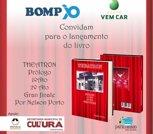 A Prefeitura de Divinópolis, por meio da Secretaria Municipal de Cultura (Semc), convida toda a população para comparecer ao Teatro Municipal Usina Gravatá, no dia 13 de maio, às 19h30, para o lançamento do livro “THEATRON Prólogo 1° e 2° ato ‘Gran finale’”, escrito por Nelson Porto.